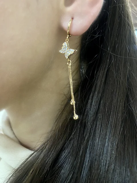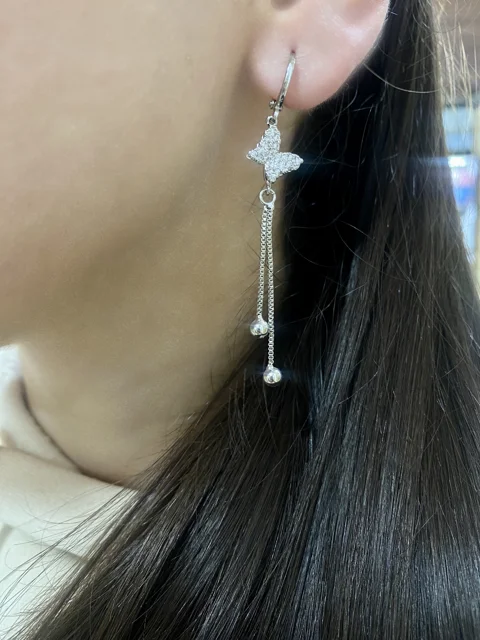 گوشواره آویز پروانه با طراحی زیبا و ظریف، انتخابی شیک و منحصربهفرد برای تکمیل استایل شماست. این گوشواره با جزییات دقیق و کیفیت بالا مناسب استفاده روزانه و مجالس رسمی بوده و جلوهای خاص به ظاهر شما میبخشد.