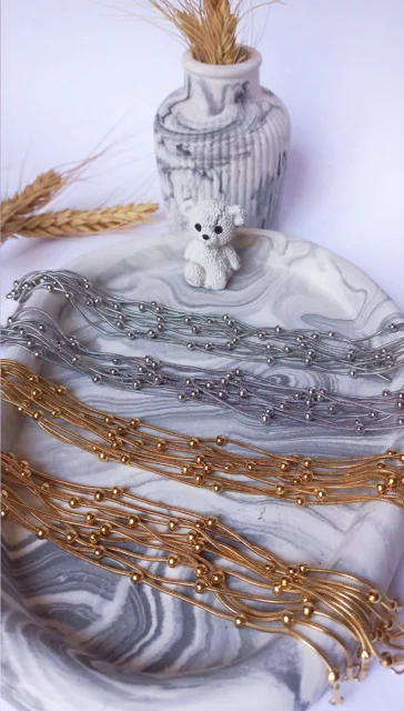 موجود در دو رنگ طلایی و نقره ای ۴۵ سانتی 📌 فول استیل 📌 ضد حساسیت 📌 رنگ ثابت 📌 کیفیت بالا و درجه یک 📌 کار وارداتی و با کیفیت✨ 📌 مناسب استفاده دائم 📌 ارسال به تمام نقاط ایران