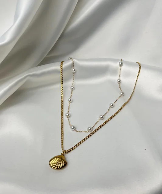 گردنبند دو لاین دخترانه شامل زنجیر مرواریدی ، زنجیر کارتیر به همراه پلاک صدف 📌 فول استیل 📌 ضد حساسیت 📌 رنگ ثابت 📌 کیفیت بالا و درجه یک 📌 کار وارداتی و با کیفیت✨ 📌 مناسب استفاده دائم 📌 ارسال به تمام نقاط ایران