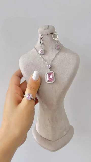 نیم ست دخترانه شامل گردنبند و گوشواره نگین صورتی نگین ها مخارج کاری شده و بدون ریزش 📌 فول استیل 📌 ضد حساسیت 📌 رنگ ثابت 📌 کیفیت بالا و درجه یک 📌 کار وارداتی و با کیفیت✨ 📌 مناسب استفاده دائم 📌 ارسال به تمام نقاط ایران